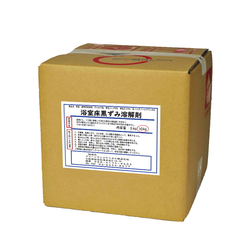 黒カビと石鹸カスの複合汚れの軟化に有効な苛性カリ配合の洗剤です。苛性カリと苛性ソーダを併用してアルカリ成分を強化し、作業時間を短縮できるように配合しました。液体版ブーブーブーです。