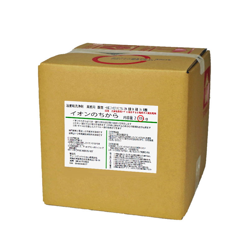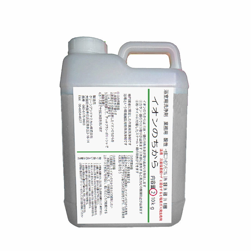 イオンパワー、お風呂にヤマトにはガラスを焼く問題があったのを解消し、フッ化アンモンを使用せずガラスが焼けない配合で女性にも使いやすい洗剤です。金属イオンを有機酸に吸着させて石鹼かすを軟化させます。
